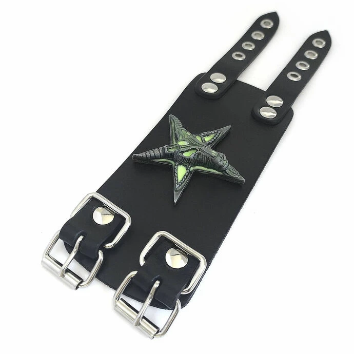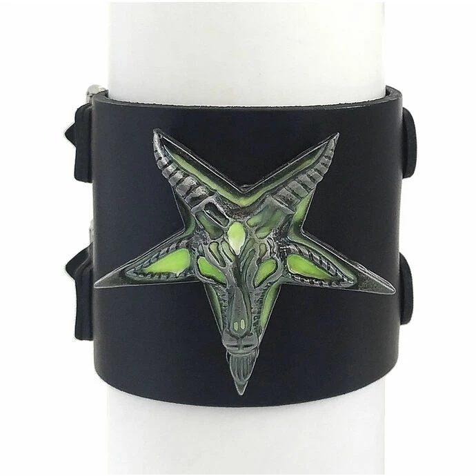The print on the metal “pentagram” is fluorescent – it glows in the dark.
