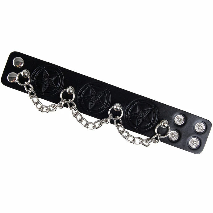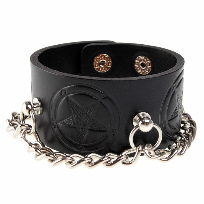 bracelet embossed with pentagrams and metal chain. Composition: genuine leather, metal. For wrist circumference of approx.: 16-21 cm. The total length of the bracelet approx.: 24 cm. The width of the bracelet approx.: 4 cm.