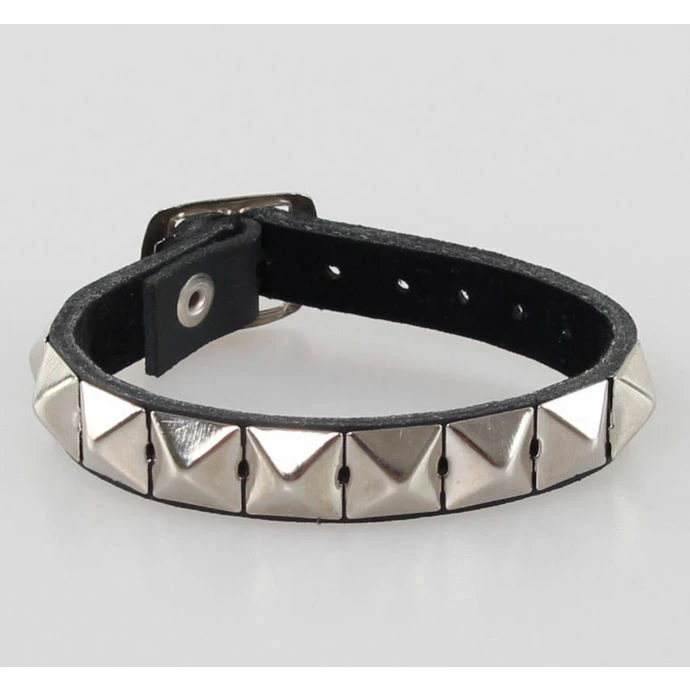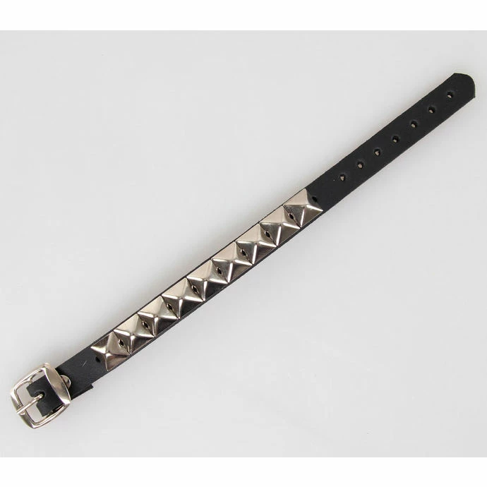 A series of pyramid bracelet přezkovým opening – 7 positions. -Material leather, silver metal pyramid. Height pyramidek approx. 0.5 cm. Bracelet Width: 2.2 cm. For wrist approx. 14-21,5 cm.
