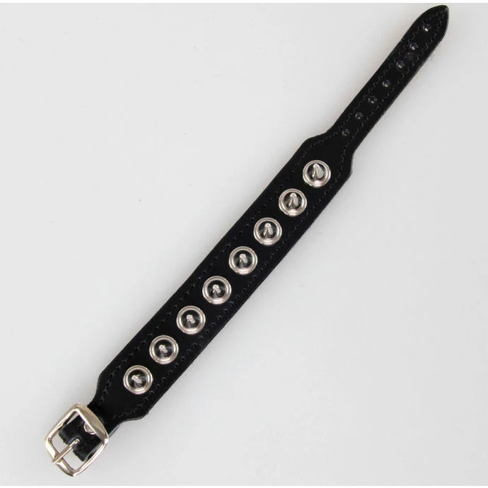 1 row bracelet with spikes. Composition: synthetic leather, metallic silver spikes. For wrist approx .: 16-22 cm. The total length of the bracelet approx .: 24.5 cm. The height of the cone of approx .: 1.3 cm. The width of the cone at the bottom of approx .: 1.1 cm. The width of the bracelet approx .: 2.4 cm. Number of cones: 8kusů.