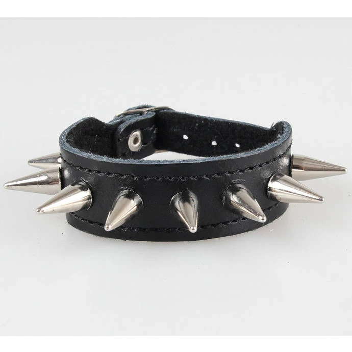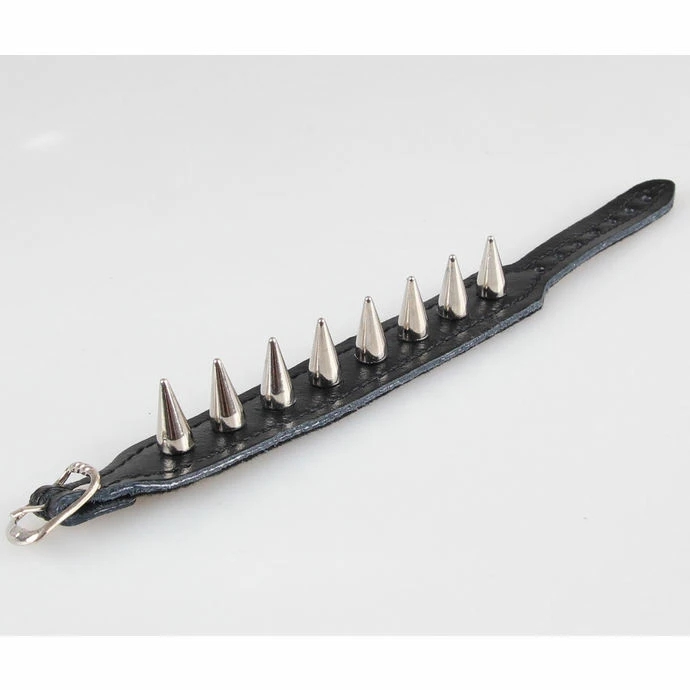1x series lathe přezkovým clasp bracelet – 7 positions. Material-synthetic leather, metallic silver spikes. The bracelet is stitched around the edges and the inside of the bracelet is a nice padded cloth. Height approx. 2cm. Width of bracelet approx.: 2.1 cm. For wrist circumference of approx.: 15-21,5 cm.