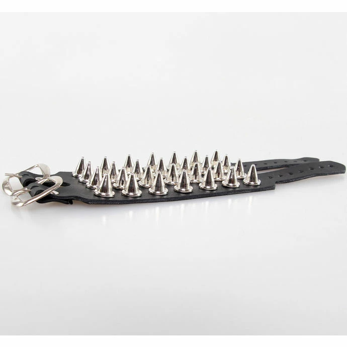 4x Series bracelet with spikes. Composition: synthetic leather, metallic silver spikes. For wrist approx .: 14.5 to 21.5 cm. The total length of the bracelet approx .: 24 cm. The height of the cone of approx .: 1.3 cm. The width of the cone at the bottom of approx .: 1.1 cm. The width of the bracelet approx .: 6.2 cm. Number of cones: 28kusů.