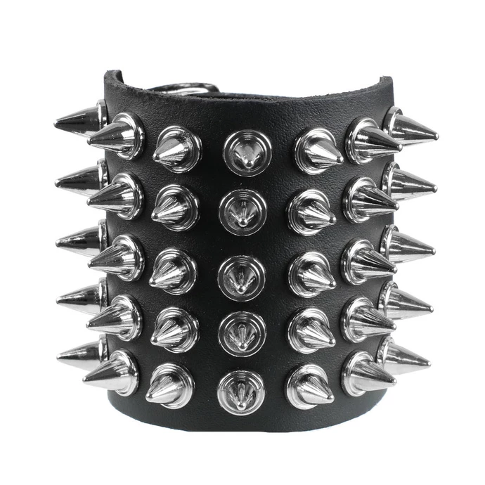 5 Series bracelet přezkovým cylindrical opening – 7 positions. -Material leather, metal studded silver bracelet barvy.Šířka: 8cm. For wrist approx. 13-21 cm.