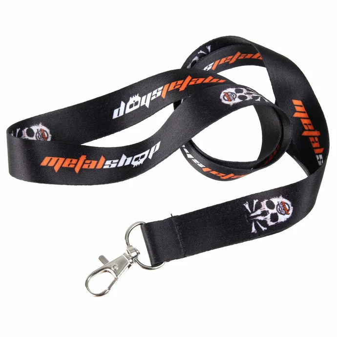 cloth collar (keychain) with print METALSHOP. Composition: polyester, metal snap-hook. Collar around the neck has a circumference of approx .: 87 cm. Overall length approx .: 48 cm. Strap width approx .: 1.9 cm.
